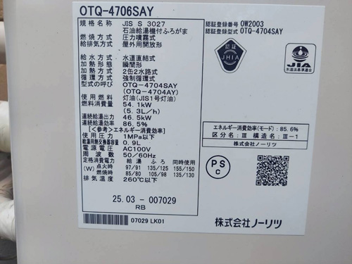 熊本市中央区 ノーリツ石油給湯機付ふろがまOTQ-4706SAY 給湯器交換工事|熊本 給湯器・ボイラー 激安価格 交換工事|熊本給湯.com